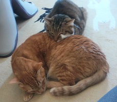 それがどうでしょう。 あとから来たニコにほとんどを渡して、自分は端っこで寝てます。 くっ付いて……同じ格好をして。 微笑ましいけど、ミルクを想い出す光景で…悲しくもある。