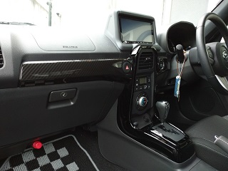 ドアを開けた瞬間の第一印象が全く違う。 色味は『黒』だが、先に書いたピアノブラックに加え、艶ありのカーボン柄と 艶なしのカーボン柄でもって意匠分けされていて、艶っぽく色気さえある。 まさに大人のオモチャ感満載(笑)。