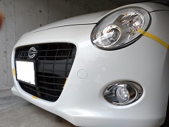 このセロというモデルには、大きくクチを開けてるようなグリルがあって、 おそらく、キャラクター作りにも貢献しているデザインなのだと思います。 で、ですね。 この純正グリルが樹脂で出来てるんですわ。