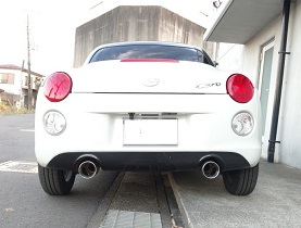 HKSのマフラーには個人的に思い入れがあります。 以前に乗っていたヴィヴィオという車の全国クラブでクラブ特製マフラーの 製作を請け負ってくれたのがHKSでした。 富士の裾野にもお邪魔して、色々とお話をさせて頂きもしました。 良いマフラーを作って貰えました。 「rororoRoRoRoRORO〜n♪」って鳴くんです。 コペンのマフラーも音質はかなり太くなってますが、下品ではないっす。 よく、純正+αな音と表現されるのですが、まさにそんな感じですね。 良い買い物をしました。