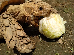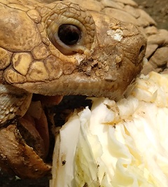 どうだろう? 草食の爬虫類は可愛い眼をしているのだけれど、それでも真剣に食べてる ときは、結構な迫力がある。 間違って指でも差し入れようものなら、きっと結構な怪我をするだろう。