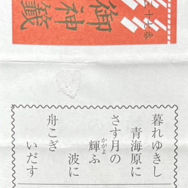 初詣、おみくじ引いたらルナ吉だった。和歌がLUNA SEAだった。 月(LUNA)青海原(SEA) …その中へ、舟をこぐ ってステキね。。 輝ふ(かがよう) って言葉を初めて知った。=きらきら光って揺れる、きらめく