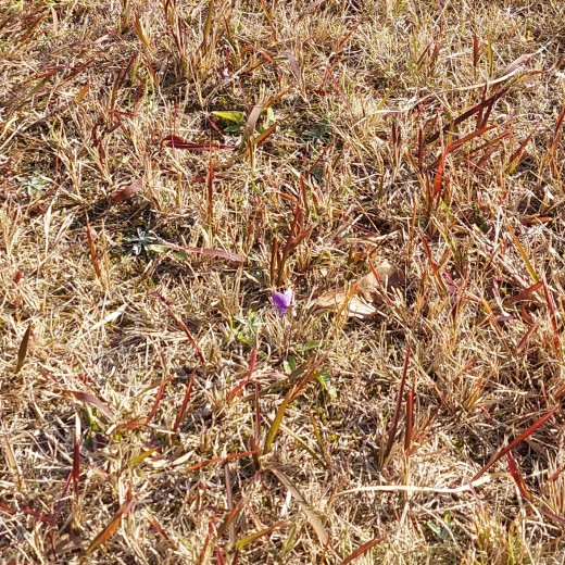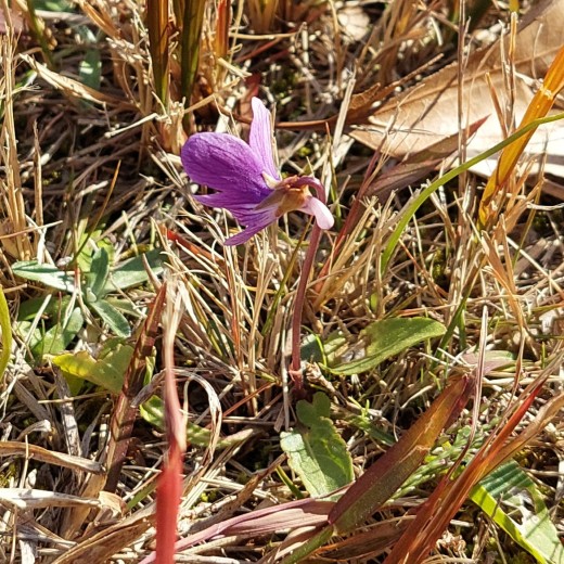 枯芝の上を歩いていたら、ふと、視界の中に小さな💜スミレ