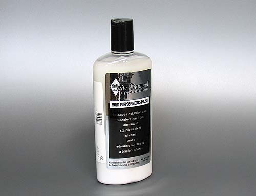 磨いたものを、光ったまま維持したい人にぴったりのケミカルで、試しに半分磨いたものを置いておくと、うちのスタッフでさえ 「これってメッキだった?」 と言うほどの光り方。