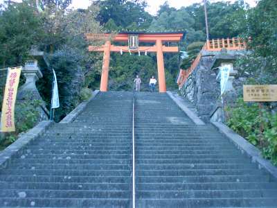 やはりこんなに腐っているところには白龍も八咫烏も寄りつけないということか。 そんなことをやっていたせいか、どうもふぉおさん達はメインの参道を通らず妙なところからお山を上がったようで。 全く舗装されていない人もいない土産屋もなにもないまさに熊野古道山越えというようなお年寄りは絶対無理。ってゆうかふぉおさん達も萌心無ければ無理。というような石段を上がりまして。やっと開けたところについたと思ったら遙か遠くに那智大社らしき社が。 本気で八咫烏の導きはない。むしろ罰が当たったのか。でもその程度、ふぉおさん達の萌たぎる魂の前にはなんの障害でもなんでもないのさ。