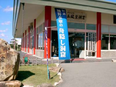 そんな感じで洞窟ぐるり一周。エレベータの所に戻ってきました。案の定、先ほどの写真を販売しますがいりませんそんな物。代わりにお土産がほんのちょっと置いてある所を見て九郎ちゃんと清盛の兜の置物を発見。ひとしきりはしゃぐ。 ちなみに、その近くには熊野水軍の船と模型と観光地によくある顔をのぞかせて取る例のあれやら、オプションで槍とかがあったのだけれど、なにぶんお土産屋さん兼係のお兄さん達がどうにも邪魔で。 いなかったら多分写真とか取ってあれこれイタイを通り越して可哀想なぐらいはしゃいでいたと思う。