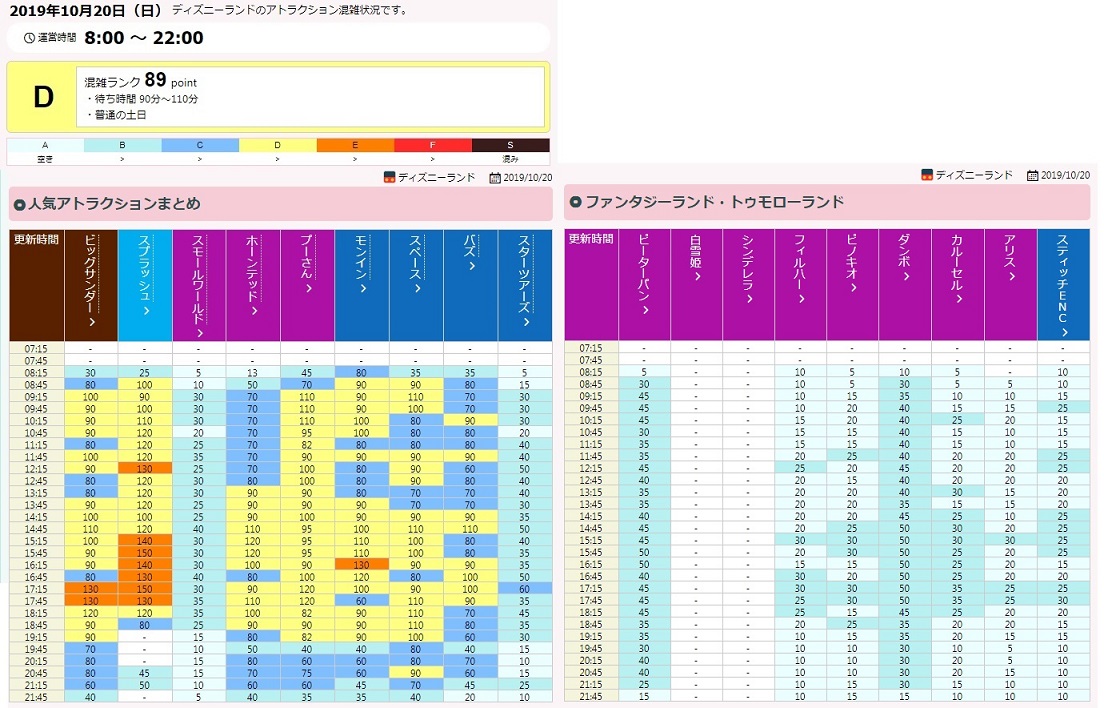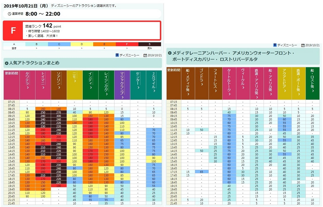 10/21(月) ランド混雑D(100pt) シー混雑F(142pt)