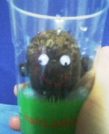 | 「hairLABO」という観葉植物を買いました。 プラスチックの紙コップに入った、なんかコケみたいなヤツです。人形の形をしているのだけど、その頭の部分に何かの種が植わっていて、そこから植物がぐんぐん生えてくるといったヤツです。 数日たって、草が生えてきて、ぼーぼーになったら、それをきれいにカットしてあげるのです。 暇だったので、写真と絵で説明してみました。 以下、参照。