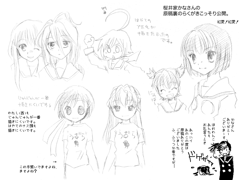 本誌発売から一週間、某I氏からお電話がありました。改めて言うまでもありませんが、この方はネタバレ大王なので要注意です。どの位要注意かというと(以下白文字)「雉宮しげるファミリー入りにもかちゃんヤキモチ」「ゆかりん、はやての寒ギャグに綾那に同情」「爽やか槙さんいいとこどり」の三本予告台詞入り、もちろんずんずんのギャグも忘れないは・ぁ・と、みたいな感じです。I氏はT田さんと似てるんですよね、どこがって台詞を丸ママ覚えているところ。五巻関係でI氏にうっかりバレで聞いてたウチ、「求めるボインはここにありますよ」関連なんか、吹き出し五つ分まるまる電話口で流暢に演じてくださいましたが、それ多分一字一句違ってなかったですよ、今思い出しても。「呼び方には気をつけるように」とか「むしろウェルカム」とか「私プロデュース」とか「久我流高速裁縫術」とかとかとか、もー、一度読んだら1ページまるごと台詞そのまま言えてしまう、異常に記憶力に長けた方なんですよ。棋士が初手から順を追って石を置いていけるように、漫画だったら画面の流れごと効果音と台詞丸々再現できるっていう怖い人です。そんな方に、ネタバレ電話される、私の気持ちが分かりますか皆さま。ハァハァ電話より無言電話より確実に怖いですよ。まったくもう。 まぁそんでバレはついででして、今何の原稿やってるの?っていう話だったんですけども「みんなが紅愛大好きみたいな本を作ってます」と言いましたら、「アナタはまたそうやって誰も居ない場所にいくね、荒野を行くね」と言われました。そうか…茨道とかゆっても、王道とは違っても「道」である時点でマシだったんだ…、もう私のいる場所は僻地どころか「荒野」だったんだ…と。でもいいんですよ、きっと私と同じ荒野を彷徨っている人がひとりかふたりか居て…そういう人の荒野の宿りになりたいですよね、溜め水と岩塩と、ボソボソの穀物かなんかしかないというような、出来の悪い本かも知れませんけども、同じ荒野を往く人と手を取り合いたいですよね。が、がんばろう…(涙)。 その他「星河紅愛団地妻論」とか出ました。華々しい事言ってた割には結局大した事が出来る人間でもなく適当な男と結婚して平々凡々退屈と不平と割烹着、みたいなのがその心な訳ですが「いや私的には団地妻よりは、みのりの為にケーキ焼いてるようなバニラのエプロンですよ、真っ赤なバラと白いパンジーですよ」「そうかなぁ、ケーキなんか焼くかなぁ」…焼かないでしょうね、めんどくさがりだもんね。あとね、ろくでもない男に引っかかりそうという気もたしかにするんですが、それとは別にね、バカな女程なんでかイイ男が付くというのも世の常だと思うんですよ。あの人なんで星河なんかに入れあげてんのかしら…とか真面目にやってる周りがやっかむというかね、大体月島さん自体がきっとそう思われてる。なんであんな刃友と組んでるのかしら、と。月島さんの場合は自分が何も求めてないからね、手段が目的というか、星河さんと何かをしようとか、どこまで行こうじゃなくて、星河さんの側にいられればそれでいいっていうかね、そういう所を星河さんがまた上手いこと利用してるあたりが腹が立つわけですが、でもまぁ月島さんはそういう星のもとに生まれてるんですよ、星のもとっていいですね、今書いてて思った。 かよう私が星がらみに話を持っていき、I氏が本誌ネタを交えつつゆかりんに話を引き戻し、電話は続くわけです。学園祭編で六巻埋まりそうだとか、もしかしたら順夕編の三巻末〜四巻頭みたいに、槙ゆか vs の決着は引っ張られるんじゃない、とか。六巻こそ裏表紙は槙ゆかだろうねとか。槙ゆかは確かに良いのですが、私的にはあの衣装にまったくもって興味がないので、学園祭ネタで引っ張られるのもツマランなぁと。そもそも私が六巻の何に一番期待しているかといえば「あとがきに『次回星河月島』と書いていただけるのかどうか」です。堂々とスルーされそうで不安です。それこそ荒野を彷徨う人々以外にはまったくどうでもいい箇所だと思いますけども。
