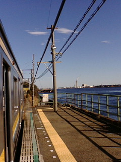 姪1号も福袋を買いに走ったところで長兄一家とは別れ、鶴見へ。以前から行ってみたかった鶴見線の海芝浦駅に向かいました。 この駅は東芝の工場内にあるため、一般客は駅の外には出られません。ロケーションは海の上(運河の脇)。