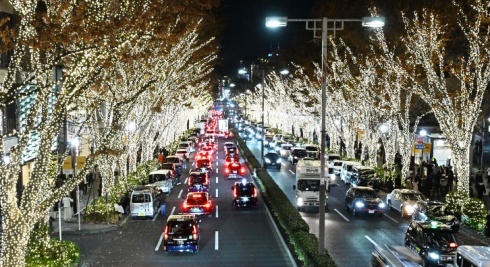 表参道の欅並木156本に温かみのあるシャンパンゴールドの LED約90万球を装飾し、表参道1.1Kmを温かく優しい光で彩ります。