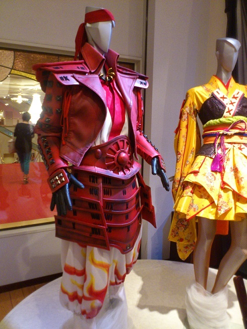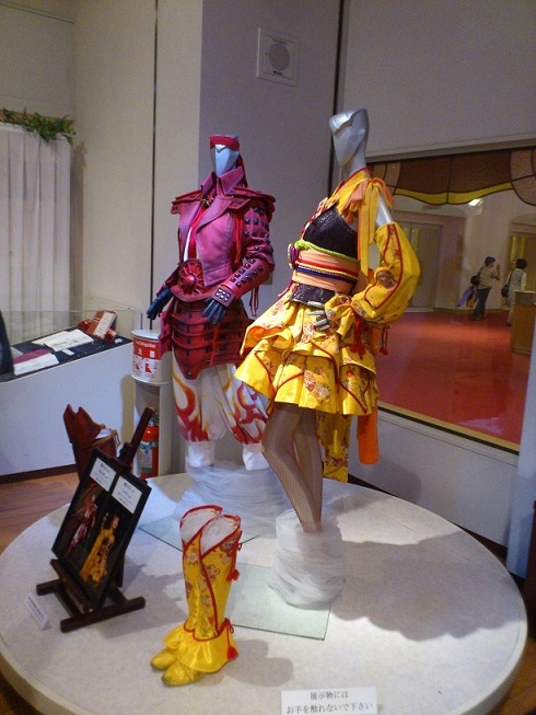 「なんだーBASARAがないならいいや〜」とその時はスルーしたのですが、 実はオーシャンズの展示の隅っこでBASARAも展示されてたと知り、 しかも花組公演は月曜日までと知り、しかもしかもこういった衣装展示は、 次の次の回で終了する! という事も知り!