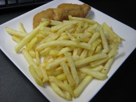 某フタンケンシュタイン漫画を読んでいたら、フィッシュ&チップスが食べたくなったので、大した知識もなく作ってみタ。小麦粉にコーンスターチとかベーキングパウダーとか入れるとか水ではなく、黒ビールで生地を延ばすとかチップスはいわゆる薄いスナックのアレではなくフライドポテイトのことだとか抑えておけばいいだろうと簡単に考えていたワケですヨ。