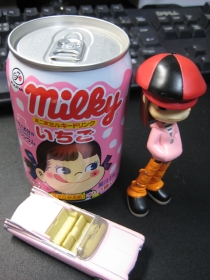 …おぉ、なんというシンプルさ。ミルクコーヒー味を買おうとしたけれど、ノーマルのミルク味も押さえて、こっちから頂く。シンプルで小さめのクセに100円はどうかとも思ったけれど、実際、旨かっタ。