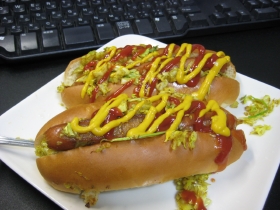 ウインナーも確保済み。専用パン、マスタード、キャベシ、ケチャップ、バター等を買い込み、久しぶり(1年振り)にHKUドッグ発動。
