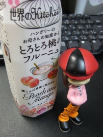 とろとろ桃のフルーニュ。フルーツスープかあ。フルーツグラタンとかデザート的な響ではないモノって、すごく違和感あるんだヨなあ。