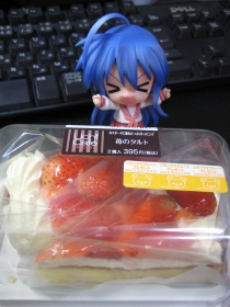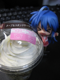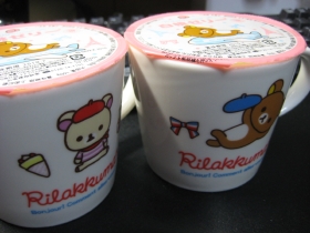 苺のタルト。…ふむ、またまたプレートプレゼントの模様。でも、現物見たら、目新しい感じじゃないから、ムリに集めなくてもいいかナ。一応、台紙は2枚貰ったけれど。そして、みかんゼリーやいちごデザートでおなじみのマグカップ入りデザートも。今回は白桃ゼリーだっタ。