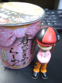 春らしいディスプレイも華やかな近所のドラッグ量販店で見つけた某企業のPBカップ麺を発見、さくっと三種類購入。