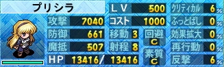 キャラ的に文句なしのプリシアはステータスが心細い。もっとアイテムで強化せねばだけど、お金が、ないのヨ。