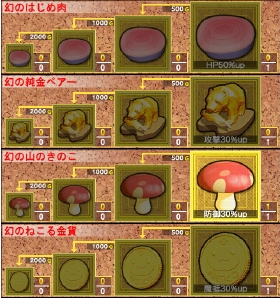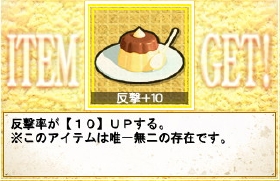 なんと反撃+10のぷっつんプリンまでゲット!! これは誰に搭載しよう。これで唯一無二は幻シリーズの山のきのこのみとなっタ。…ふぅむ。