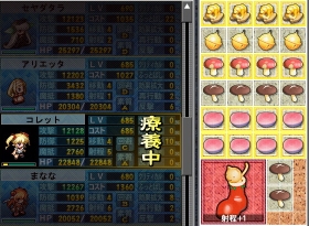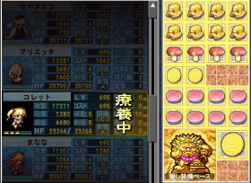 鳳姉妹、プリシラに続いて倍増金は魔法キャラのコレットに。やはり後方支援系に付けて圧縮が出来ないアイテム搭載して特殊能力伸ばすのが懸命だなあ、と。欲をいえば、1軍にはみな付けたいヨね。