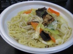 で、さっそく買うですヨ。甘い系もイケるけれど、このシリーズはやはり非甘味系のが好きだナ。好きといえば、タンメン。野菜のがいい気分なコンビニにあったので買ってみタ。