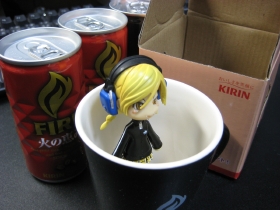 今日もファイア4本(火の恵みとブラック各2本)買って、赤に続いて黒のマグカップゲット!! ファイアといえばイメージキャラクタの松井も今シーズンの幕がようやく開くなあ。新天地でもバリバリ打って欲しいヨ。
