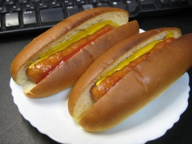 昨日も行ったのだけれど、なかったんだヨね。今日は3個ほどあったので、久しぶりにLチキともども購入。旨ーい。パンが適度にやわらかいのでとても幸せ気分。ところで両バンズの原材料。製造元が一緒だし、てっきり同じかと思ったら、そうでもないので、驚く。