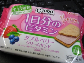 ヘルシービスケット買ってみタ。C1000といえば某薬品メーカーのビタミン飲料。いつの間にか食品メーカーから出ていた模様。