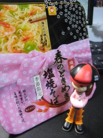 塩焼きそば。パッケージには青で統一した夏の予告も載っていたけれど、きっとシーフード系なのでしょう。…ふう。