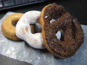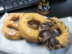 よくあるチョコドーナツ。期待しないで齧ったら、これがけっこう旨くて驚いたという。コクがあるというか、やるじゃないか。