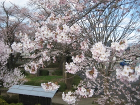 一度花をつけたらあっという間に満開、散っちゃうのが桜。そういうワケで今日も観に行くですヨ。旧中学校には野球小僧がいたので公園へ。曇ってるし人もいなかろうと思ったけれど、一年に一度のことだし。やはりちらほら人はいるなあ。