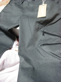 ジップストレッチパンツのグレー。ブーツならぬ、シューカット仕様。