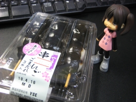 ずばり、大玉たこ焼き。温めが足りないせいか、ぼそぼそ感がクヤシイ。昨日なかった某ランキングのスイーツ(笑)もこの店舗にはあったので、さくっと購入。