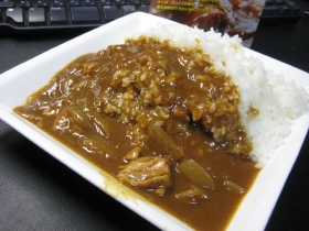 夜はシチュー、だったけれどカレーな気分だったので台所にあったレトルトを温めて頂く。