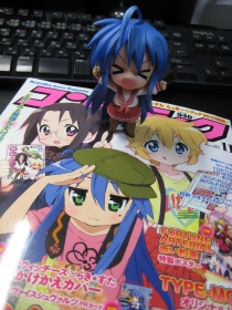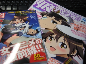 らき☆すたがあのパンツアニメとコラボ、付録の最新刊用かけかえカバーでコスプレを披露してますが、コミックは持っていないので意味がないという。パンツアニメのキャスト陣のお別れコメントを含む特集記事もいいけど、目当てはチョココロネを今年のW杯で有名になったブブゼラに見立ててるこなたのカードだったり(笑)。
