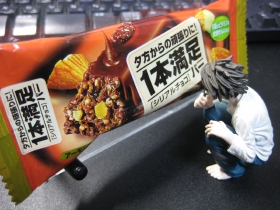 いいことがあるドーナツ屋さんとのコラボで、小さなドーナツ型のモノが入ってると思ったけれど、全然そんなことはなかったぜ!! 仮にも本当にも「小枝」なんだし、そりゃそうダ。