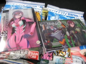 なんとかマリを確保。キャラ系はもうなく、あとは全員集合くらい。ウエハースを3個買ったので、あともう一個でもう一枚ファイルを云々いわれたけれど目当てはマリ単体なので、やんわり断る。マリ目当てのウエハースのカードはハズレ。深夜、もう一度行くと、ファイルは文字だけのモノしかなく、もう在庫は店頭にあるだけということみたい。…早すぎだろ。5個買ったウエハースはマリ単体も出て、あとはマリとエヴァの仮設5号機のコンビのみ。このときもファイルを差し上げますよ云々いわれたけれど、もう意味ないし断った。
