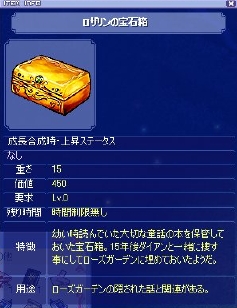 ついにバラの草原もなくなったので、一旦、出て、再び「ロザリンの童話の本(?)」を入手するべくドリドリ。ドリドリで「ロザリンの宝石箱」を発掘、ダブルクリックで入手、ということをすっかり忘却。さらに、「野獣のバラ」を入手したあとにダブルクリックすると、「愛のバラ」と「偽るバラ」かに化けるという仕掛けだったらしい。このあと、やっと「ロザリンの宝石箱」を掘り当てたけれど、それを知らずに「野獣のバラ」を放って置いてしまっていたのか…。2回分損しタ。というか、最初で終わっていたのかもしれないと思うとやりきれない。