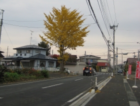 昨日のこと。いい気分なコンビニ脇の歩道に舞い散る黄色い葉っぱ。どこからと思いきや道を挟んだ向こう側にそれはあっタ。