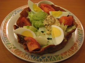 まず、番組で見て旨そうだったカルフォルニア"タコサラダ"をオーダー。ドレッシングはシーザー、タコス用にサルサソースもある、至れり尽くせりな逸品。…これは、本当に旨い。順位は7位。一緒に定番中の定番、ビーフハンバーグステーキをオーダー。