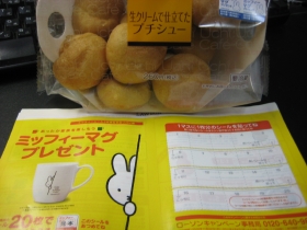 マチのほっとステーションに行ってスイーツ(笑)を漁ると、ミッフィーシールを発見。また、何かキャンペーンかと探ると、マグカップ!!
