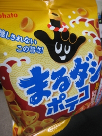ポテコはまるダシというハレンチなシリーズが。とんこつ塩味も買ったけれどカップ麺と被るので、かつお醤油から。