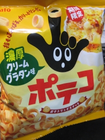 ポテコの期間限定、濃厚クリームグラタン味も素晴らしかっタ。どの辺がクリームグラタンかは不明だけど。