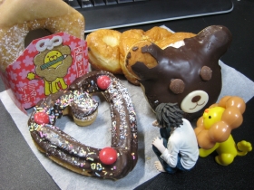 エンゼルテディパン、ハートチュロ、必勝ドーナツ(勝て! オレ)、シンプルさが眩しいツイスト、定番のエンゼルクリームの5点。くまさんのはインパクトがいい感じ。家人にも評判だっタ。その足でショップへ行き、CDを購入。