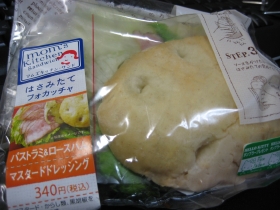 フォカッチャとはやるな! 添付されてるドレッシングをかけて頂く、憎い演出はいいけど、ちょっと具を頑張って頂きたい所存。その、マチのほっとステーションにあっタ。