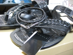 ずっと気になってたキャサリンさんのサイドバックルレザーサンダルの黒。思ってたより、ずっといい。アンクにもブレスにもなるニコルの編み紐アンクレット(ブレスレット)はセール品ではなかったけれど、一応。サンダルはかっこいいけれどちょっと履きづらいナ。