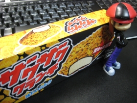 帰りにミネヲ買いにドラッグ量販店へ。前回見送ったスナック菓子のスパイシートマト味。フリシャカパウダー付きでさらにスパイシーになる仕様。まるでファストフードだナ。しかし、この風味はパンチが強すぎて、口の中にスパイシーさがいつまでも残る、残る。