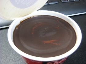ぐぐいっと持ち上がる表面のチョコと中心のチョコのコンビネーションがとても素敵な一品。昨日、スーパーで買ったアイスも食べた。