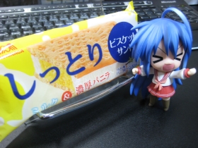 こっちはスーパーで買ったビスケットサンド。いい気分なコンビニでかぼちゃと一緒に買ったリニューアルなラテペットボトル。